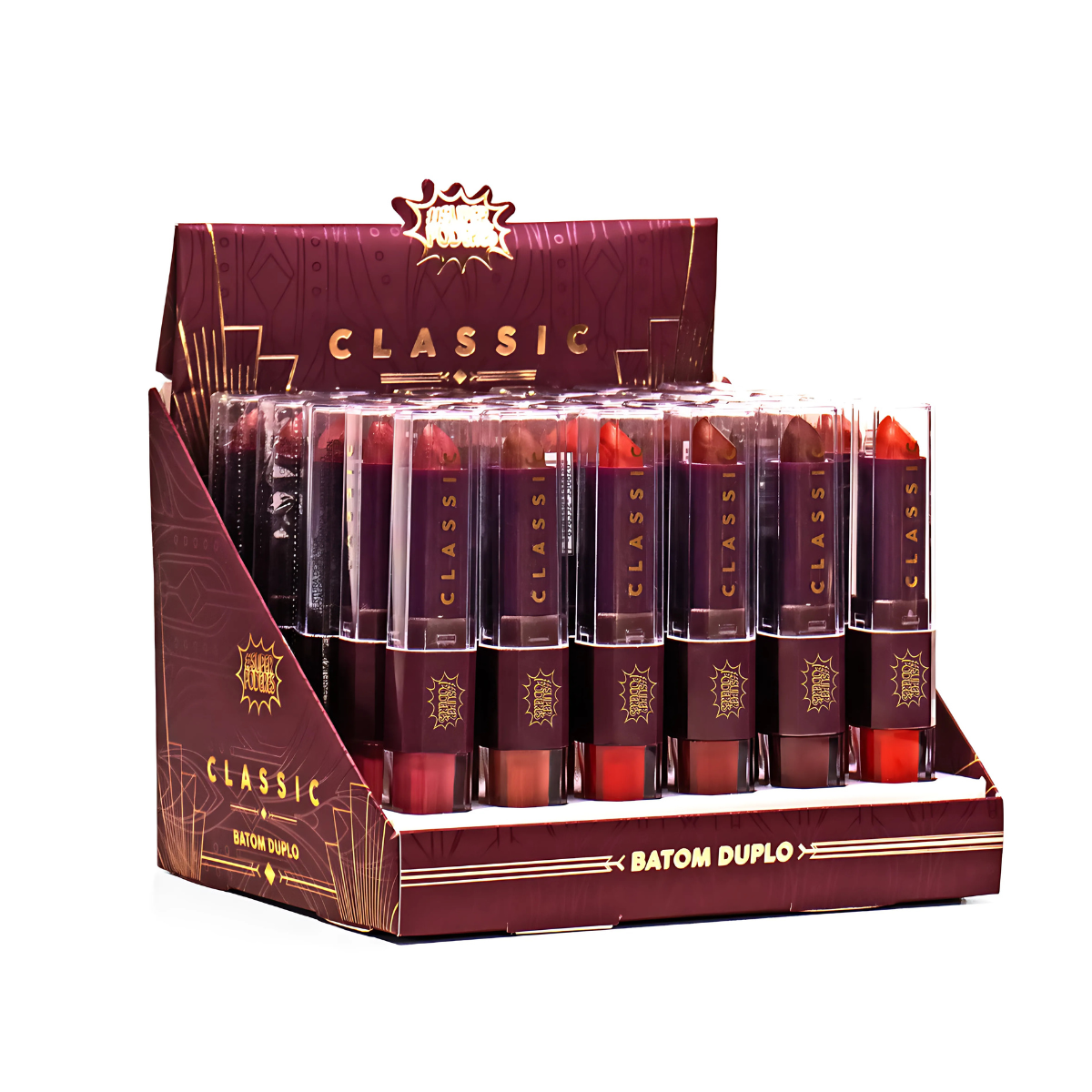 Cores Vibrantes: Disponível em uma seleção de cores vibrantes, o Batom Duplo Classic proporciona tons ricos e intensos que destacam e valorizam os lábios, adequando-se a diferentes estilos e ocasiões.