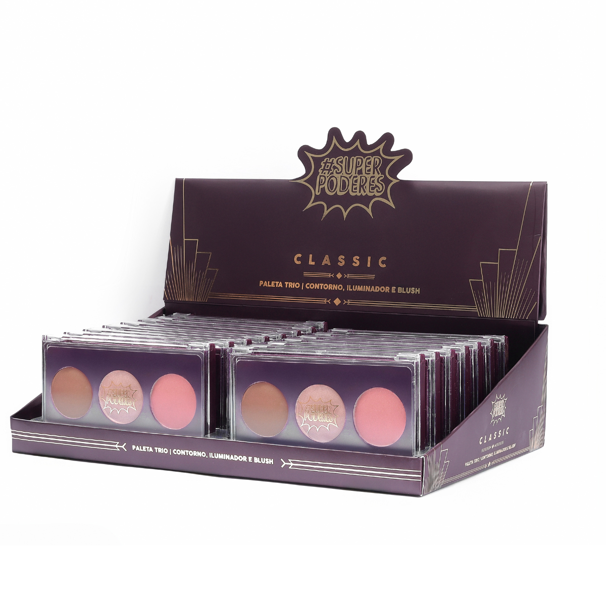PALETA TRIO | CONTORNO, ILUMINADOR E BLUSH (BOX FECHADO CONTÉM 16 UNIDADES)